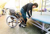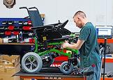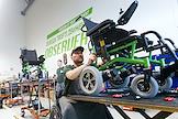 Фабрика по изготовлению инвалидных колясок и сопутствующего оборудования с целью обеспечения "безбарьерной среды" для инвалидов "Обсервер". Работа реабилитационного центра при фабрике. Жанровая фотография.