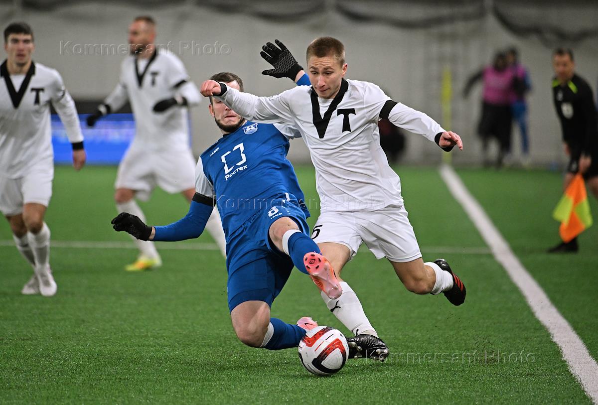 Фонбет - Кубок России по футболу 2025/26. 1/4 финала. Матч между командами "Торпедо" (Москва) - "Балтика" (Калининград) на стадионе "Арена Химки". Игрок команды "Балтика" Кирилл Обонин (слева) и игрок команды "Торпедо" Алексей Каштанов (справа) во время матча.