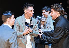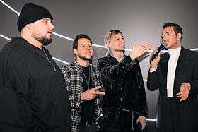 II Церемония вручения профессиональной премии блогеров "Блогема" в киноконцертном комплексе "Мосфильм". Слева направо: рэперы ARTEM SHILOVETS (Артем Шиловец), uniqe (Егор Юницкий) и Nkeeei (Никита Коробыко) и Стилист Алексей Сухарев на церемонии.