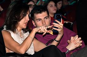 II Церемония вручения профессиональной премии блогеров "Блогема" в киноконцертном комплексе "Мосфильм". Стримерша, блогер Амина Мирзоева (Tenderlybae) (слева) и телеведущий Дмитрий Борисов на церемонии.