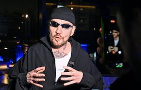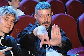 II Церемония вручения профессиональной премии блогеров "Блогема" в киноконцертном комплексе "Мосфильм". Блогер, солист группы "Хлеб" Денис Кукояка (справа) и блогер, стример Дима Гордей (в центре) на церемонии.