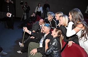 II Церемония вручения профессиональной премии блогеров "Блогема" в киноконцертном комплексе "Мосфильм". Слева направо, первый ряд: продюсер Иосиф Пригожин, певица Валерия, дизайнер Артемий Лебедев, телеведущая Марина Кравцова, верхний ряд: блогер Влад Бумага, певица Юлианна Караулова, блогеры Елена Карыгина и Карина Нигай на церемонии.