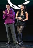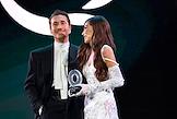 II Церемония вручения профессиональной премии блогеров "Блогема" в киноконцертном комплексе "Мосфильм". Актер Антон Лаврентьев (справа) и телеведущая Юлия Барановская (слева) на церемонии.