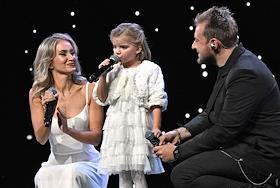 II Церемония вручения профессиональной премии блогеров "Блогема" в киноконцертном комплексе "Мосфильм". Участники дуэта NANSI & SIDOROV Анастасия Белявская (слева), Олег Сидоров (справа) и их дочь Аэлита на церемонии.