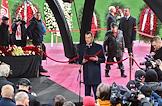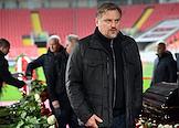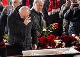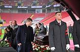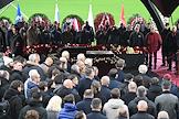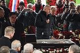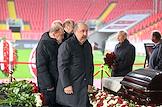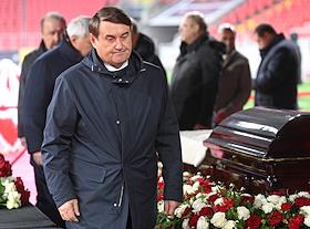 Церемония прощания с бывшим игроком футбольного клуба "Спартак" и сборной СССР Никитой Симоняном на стадионе "Лукойл Арена". Футбольный тренер Валерий Газаев (в центре) на церемонии.