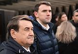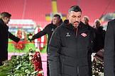Церемония прощания с бывшим игроком футбольного клуба "Спартак" и сборной СССР Никитой Симоняном на стадионе "Лукойл Арена". Главный тренер команды "Ахмат" Станислав Черчесов (слева) на церемонии.