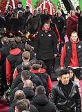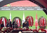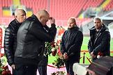 Церемония прощания с бывшим игроком футбольного клуба "Спартак" и сборной СССР Никитой Симоняном на стадионе "Лукойл Арена". Главный тренер команды "Ахмат" Станислав Черчесов (в центре) на церемонии.