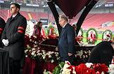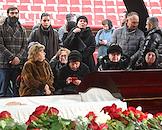 Церемония прощания с бывшим игроком футбольного клуба "Спартак" и сборной СССР Никитой Симоняном на стадионе "Лукойл Арена". Родственники Никиты Симоняна на церемонии прощания.
