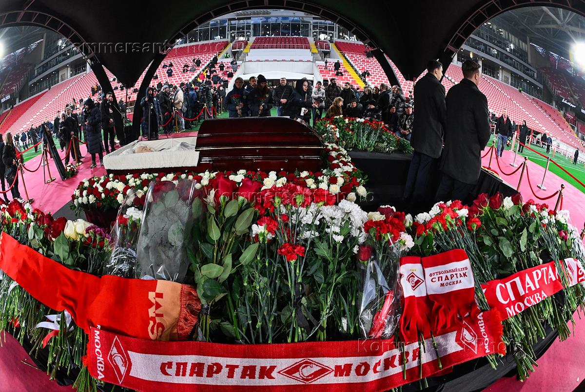 Церемония прощания с бывшим игроком футбольного клуба "Спартак" и сборной СССР Никитой Симоняном на стадионе "Лукойл Арена".