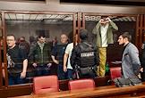 Оглашение приговора по делу о теракте на Крымском мосту в Южном окружном военном суде в Ростове-на-Дону. Фигурантам дела о теракте на Крымском мосту назначили наказание в виде пожизненного лишения свободы. Обвиняемые Роман Соломко (слева), Александр Былин (второй слева), Артур Терчанян (в центре) и Олег Антипов (второй справа) во время заседания суда.