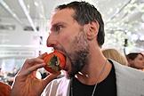 Праздничное мероприятие Дня рождения бренда "Ultima Яндекс Go" на Рогожском рынке. Владелец бюро Visionär Роман Ковалишин во время празднования.