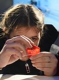 Фестиваль "Проводник истории". Участники фестиваля на мастер-классе по изготовлению светящихся значков.