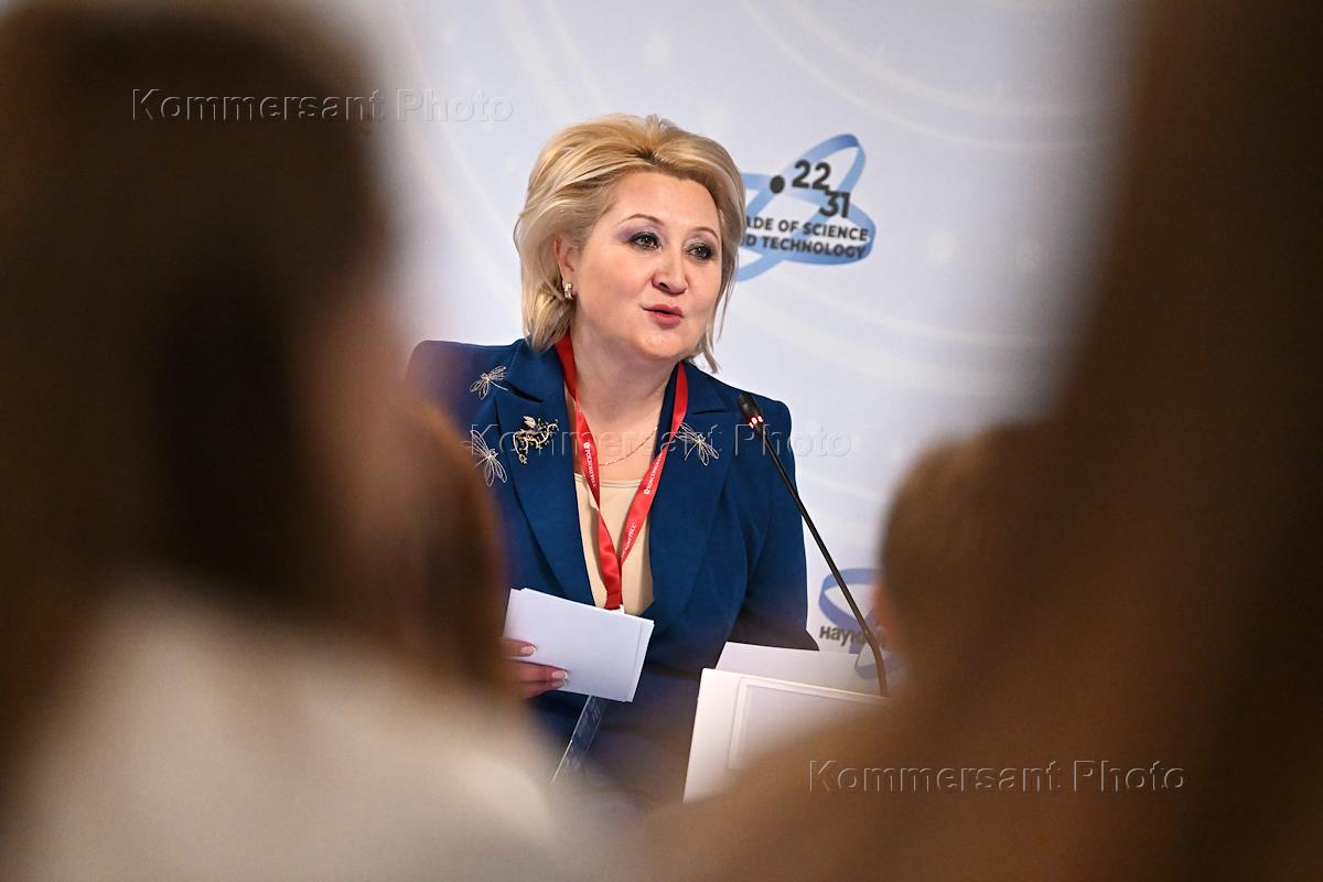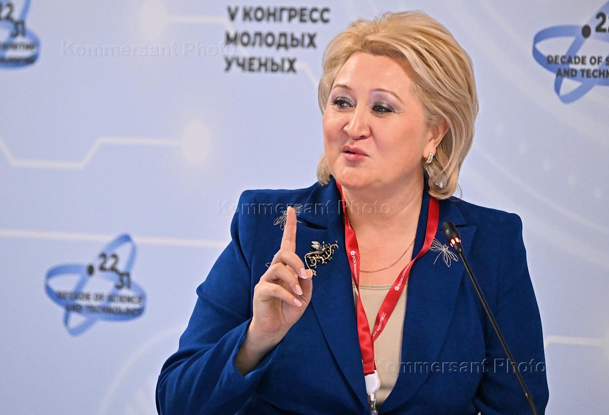 V Конгресс молодых ученых (КМУ). Сессия "Научный и демографический потенциал студенческой семьи – фундамент будущего страны". Представитель в Совете Федерации России от исполнительного органа государственной власти Республики Башкортостан Лилия Гумерова во время сессии.
