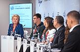 V Конгресс молодых ученых (КМУ). Сессия "Научный и демографический потенциал студенческой семьи – фундамент будущего страны". Представитель в Совете Федерации России от исполнительного органа государственной власти Республики Башкортостан Лилия Гумерова (справа) во время сессии.