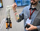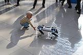 V Конгресс молодых ученых (КМУ)-2025 на федеральной территории "Сириус". Выставка конгресса. Робот-собака на выставке.
