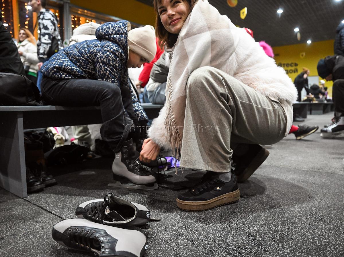 Торжественная церемония открытия катка на ВДНХ. Люди во время катания на коньках.