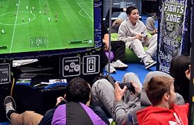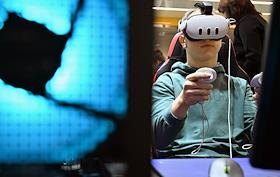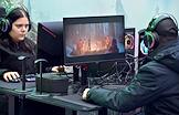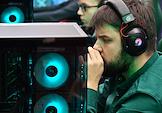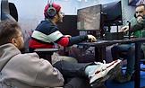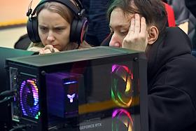 "Московская международная неделя видеоигр" в инновационном центре "Сколково". Участники недели во время игры на компьютере.