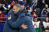 Мир Российская Премьер-Лига (РПЛ) 2025/2026. 17-й тур. Матч между командами ЦСКА (Москва) - "Оренбург" (Оренбург) на стадионе "ВЭБ Арена". Тренер команды "Оренбург" Дмитрий Белоруков (справа) и главный тренер команды ЦСКА Фабио Челестини (слева) во время матча.