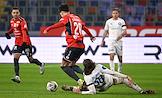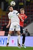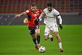 Мир Российская Премьер-Лига (РПЛ) 2025/2026. 17-й тур. Матч между командами ЦСКА (Москва) - "Оренбург" (Оренбург) на стадионе "ВЭБ Арена". Игрок команды ЦСКА Матвей Лукин (слева) и игрок команды "Оренбург" Дмитрий Рыбчинский (в центре) во время матча.