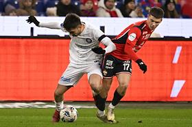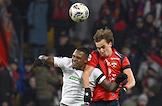 Мир Российская Премьер-Лига (РПЛ) 2025/2026. 17-й тур. Матч между командами ЦСКА (Москва) - "Оренбург" (Оренбург) на стадионе "ВЭБ Арена". Игрок команды ЦСКА Кирилл Глебов (слева) и игрок команды "Оренбург" Эмирджан Гюрлюк (слева) во время матча.