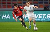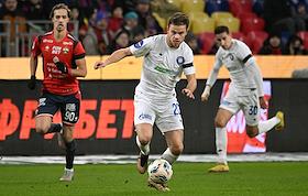Мир Российская Премьер-Лига (РПЛ) 2025/2026. 17-й тур. Матч между командами ЦСКА (Москва) - "Оренбург" (Оренбург) на стадионе "ВЭБ Арена". Игрок команды "Оренбург" Дмитрий Рыбчинский (в центре) во время матча.