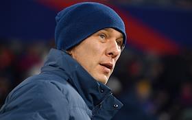 Мир Российская Премьер-Лига (РПЛ) 2025/2026. 17-й тур. Матч между командами ЦСКА (Москва) - "Оренбург" (Оренбург) на стадионе "ВЭБ Арена". Тренер команды "Оренбург" Дмитрий Белоруков во время матча.