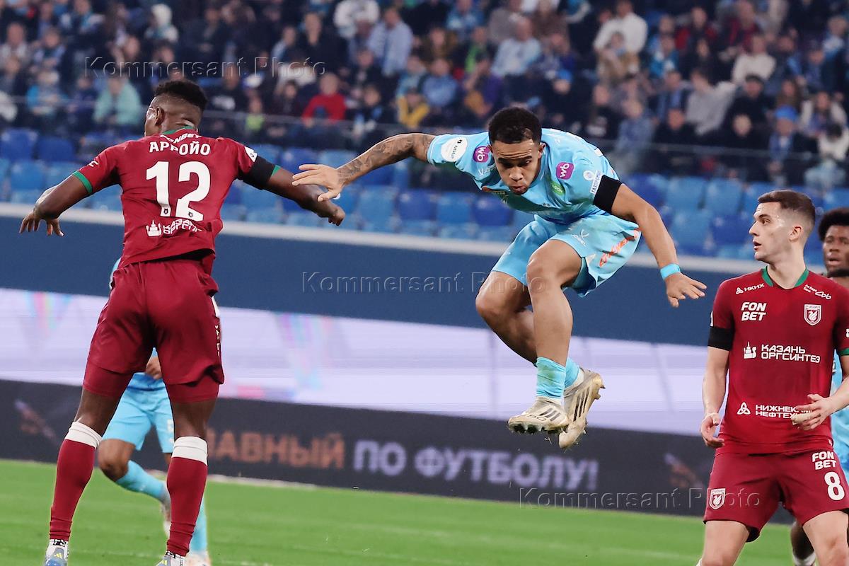 Мир Российская Премьер-Лига (РПЛ) 2025/2026. 17-й тур. Матч между командами "Зенит" (Санкт-Петербург) - "Рубин" (Казань) на стадионе "Газпром Арена". Жанровая фотография.