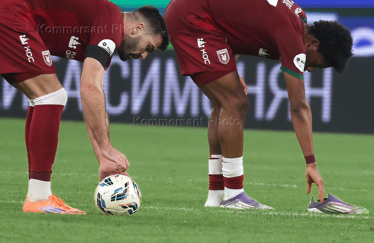 Мир Российская Премьер-Лига (РПЛ) 2025/2026. 17-й тур. Матч между командами "Зенит" (Санкт-Петербург) - "Рубин" (Казань) на стадионе "Газпром Арена". Игроки команды "Рубин" во время матча.