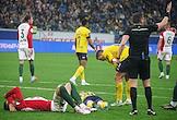 Мир Российская Премьер-Лига (РПЛ) 2025/2026. 17-й тур. Матч между командами "Ростов" (Ростов-на-Дону) - "Локомотив" (Москва) на стадионе "Ростов Арена". Игрок команды "Локомотив" Артем Карпукас (слева) и игрок команды "Ростов" Кирилл Щетинин (второй справа) во время матча.