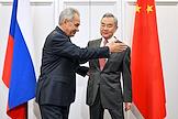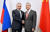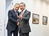 Министр иностранных дел Китайской Народной республики Ван И во время встречи с секретарем Совета безопасности России Сергеем Шойгу.