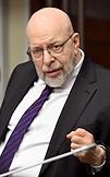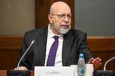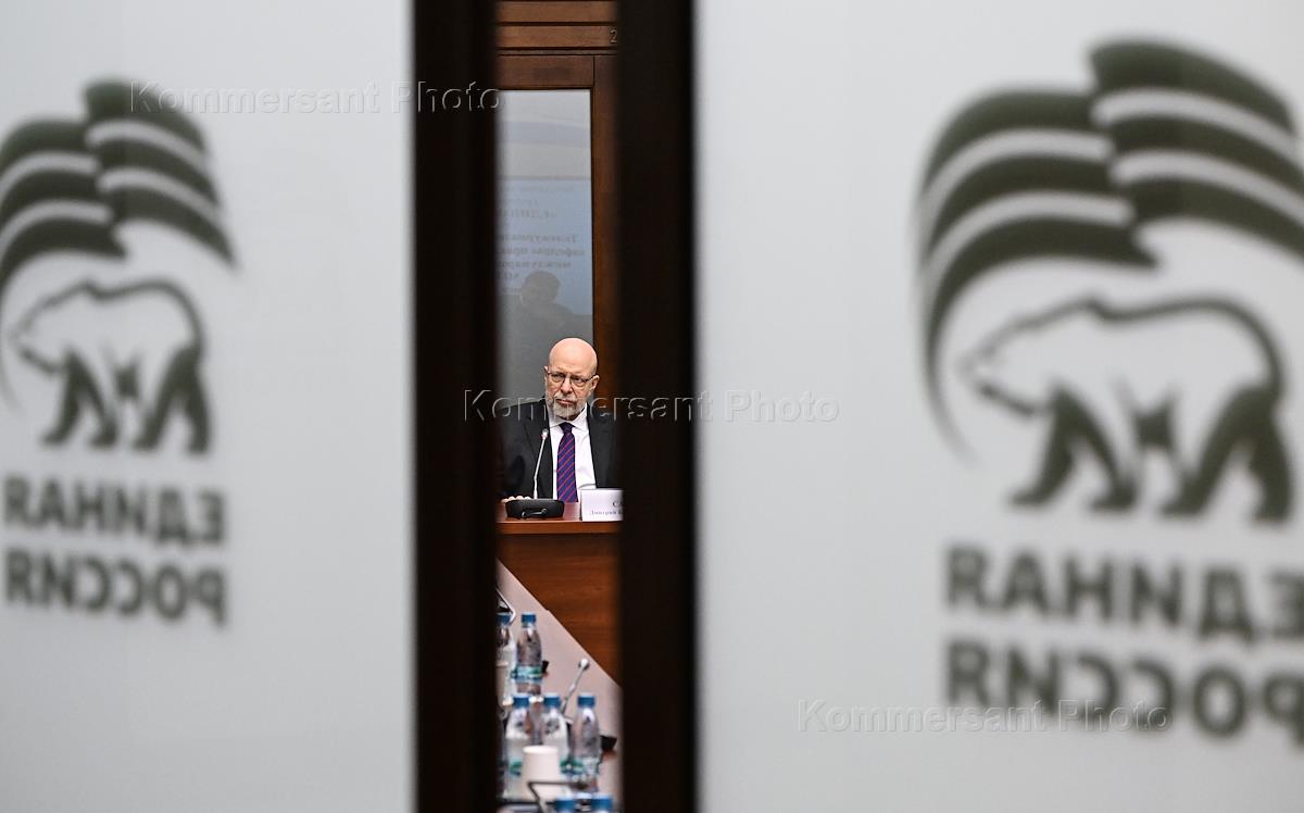 Заседание внутрифракционной группы фракции "Единая Россия" в Государственной думе (ГД) России. Профессор кафедры прикладного анализа международных проблем МГИМО Дмитрий Саймс во время заседания.