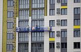 Виды города Волжский. Жанровая фотография. Рабочие во время облицовки фасада многоэтажного жилого дома.