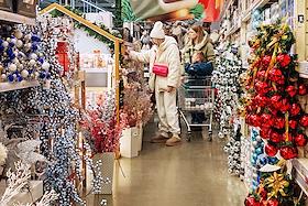 Жанровая фотография. Покупатели в магазине елочных украшений.