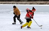 Жанровая фотография. Виды Волжского. Дети играют в хоккей на льду реки Ахтуба.