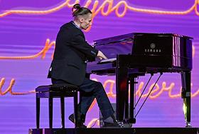 Пятый Международный форум гражданского участия #МЫВМЕСТЕ в Национальном центре "Россия". Церемония награждения Международной премии #МЫВМЕСТЕ. Пианист Алексей Романов во время выступления на церемонии.