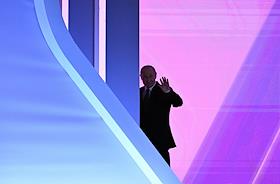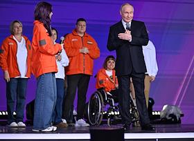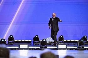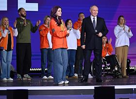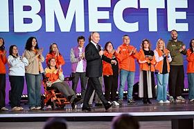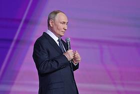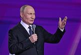 Пятый Международный форум гражданского участия #МЫВМЕСТЕ в Национальном центре "Россия". Церемония награждения Международной премии #МЫВМЕСТЕ. Президент России Владимир Путин на церемонии.