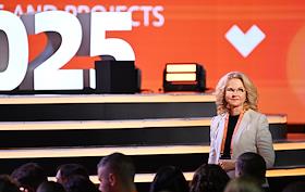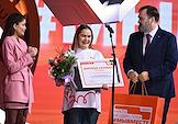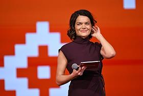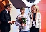 Пятый Международный форум гражданского участия #МЫВМЕСТЕ в Национальном центре "Россия". Церемония награждения Международной премии #МЫВМЕСТЕ. Заместитель министра обороны России, председатель фонда "Защитники Отечества" Анна Цивилева на церемонии.