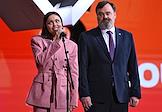 Пятый Международный форум гражданского участия #МЫВМЕСТЕ в Национальном центре "Россия". Церемония награждения Международной премии #МЫВМЕСТЕ. Блогер, супруга рэпера ST (Александр Степанов) Ассоль Васильева (слева) и генеральный директор АНО "Россия — страна возможностей", ректор Мастерской управления "Сенеж" Андрей Бетин (справа) на церемонии.