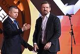 Пятый Международный форум гражданского участия #МЫВМЕСТЕ в Национальном центре "Россия". Церемония награждения Международной премии #МЫВМЕСТЕ. Председатель правления Общероссийского общественно-государственного движения детей и молодежи "Движение Первых", Герой России Артур Орлов (слева) и главный управляющий директор "Альфа-Банка" Владимир Верхошинский (справа) на церемонии.