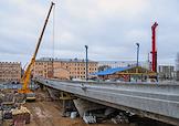 Строительная площадка Большого Смоленского моста через реку Неву. Губернатор Санкт-Петербурга Александр Беглов (в центре) во время посещения площадке.
