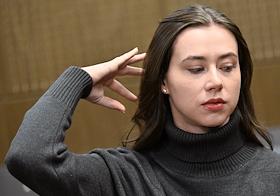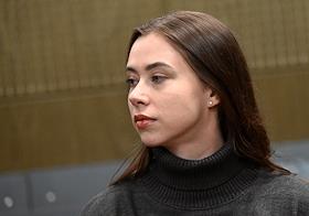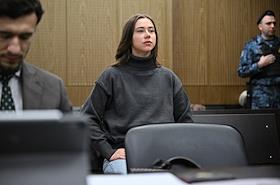 Рассмотрение по существу уголовного дела о легализации денежных средств блогера Александры Митрошиной в Тверском районном суде. Блогер Александра Митрошина во время заседания суда.