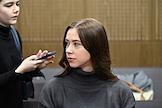Рассмотрение по существу уголовного дела о легализации денежных средств блогера Александры Митрошиной в Тверском районном суде. Блогер Александра Митрошина перед началом заседания суда.