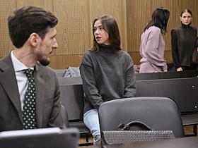 Рассмотрение по существу уголовного дела о легализации денежных средств блогера Александры Митрошиной в Тверском районном суде. Блогер Александра Митрошина (в центре) во время заседания суда.