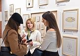 Превью новой ярмарки графики "Обертон" by Cosmoscow в культурном центре "Тон-центр". Директор Cosmoscow Маргарита Пушкина (слева) на ярмарке.