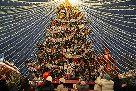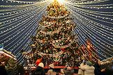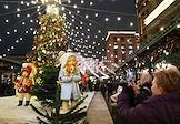 Виды вечерней Москвы. Жанровая фотография. Новогоднее убранство города. Новогодняя елка на площадке Фестиваля "Московские сезоны" на Манежной площади.