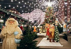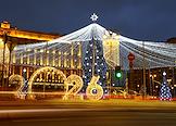 Виды вечерней Москвы. Жанровая фотография. Новогоднее убранство города. Площадка Фестиваля "Московские сезоны" на Манежной площади.