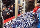 Виды вечерней Москвы. Жанровая фотография. Новогоднее убранство города. Площадка Фестиваля "Московские сезоны" на Манежной площади. Девочка у скульптуры снегиря.