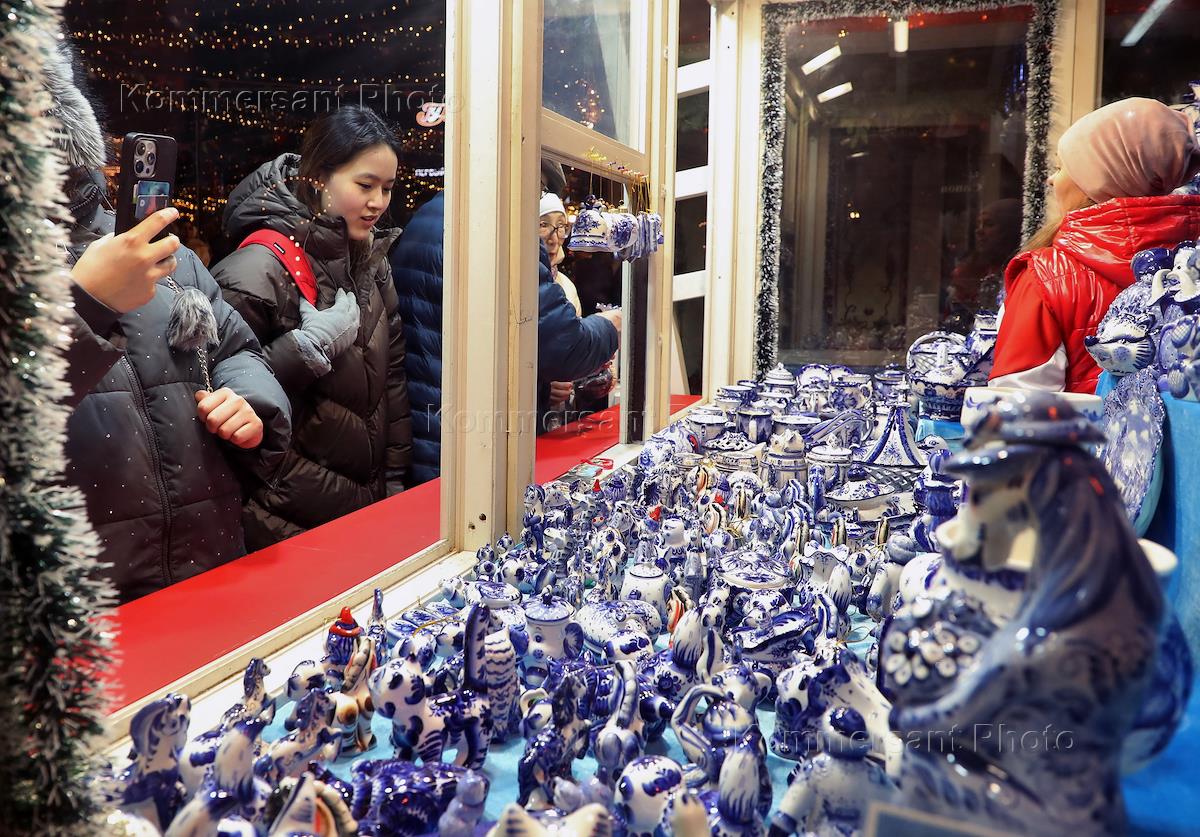 Виды вечерней Москвы. Жанровая фотография. Новогоднее убранство города. ГУМ-ярмарка на Красной площади.