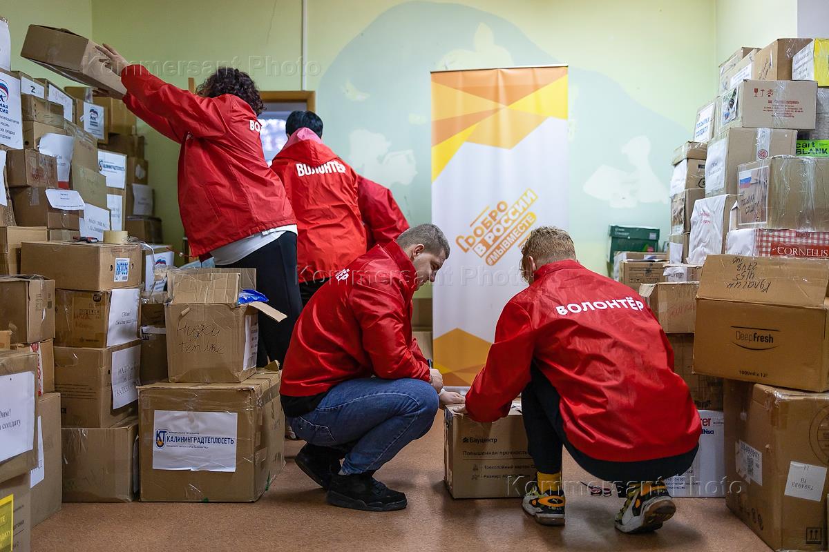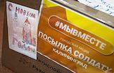 Центр по сбору и сортировке гуманитарной помощи в рамках акции "Посылка солдату" в Калининграде.