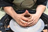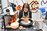 Московский Зимний Фестиваль керамики "4ceramics" в бизнес-центре Amber Plaza. Участница фестиваля во время изготовления керамического изделия.